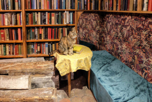 There is little consistency in the décor here, but that further emphasizes that the only things that matter are reading and inspiring. There are crumbling floor tiles and mismatched picture frames, rusting typewriters and fading love letters, but in every second-hand chair there sits an avid reader with a brow knit in concentration.